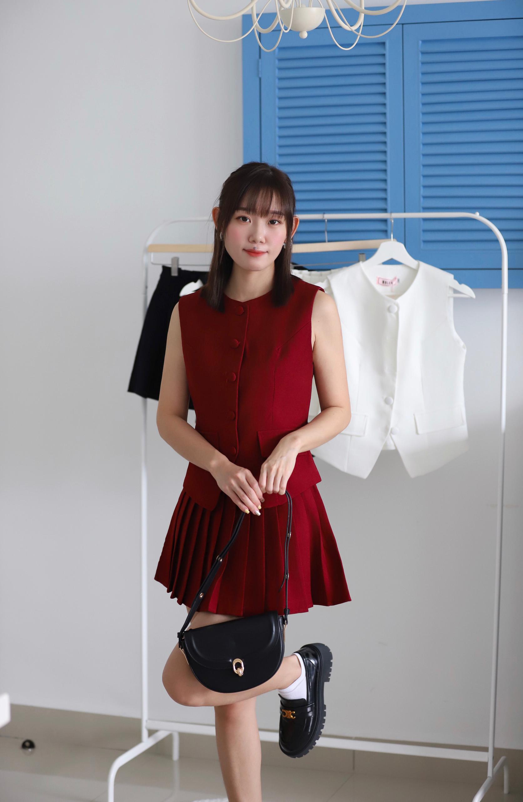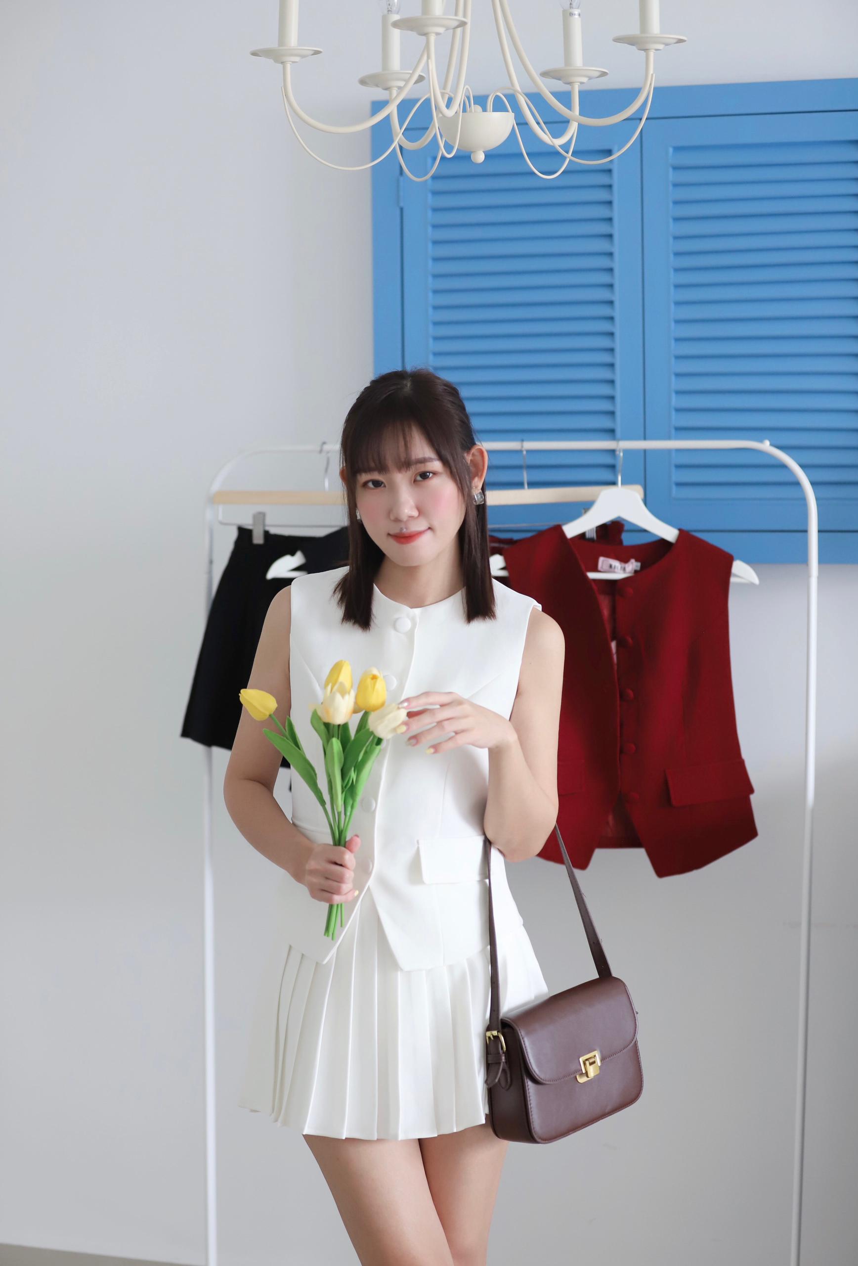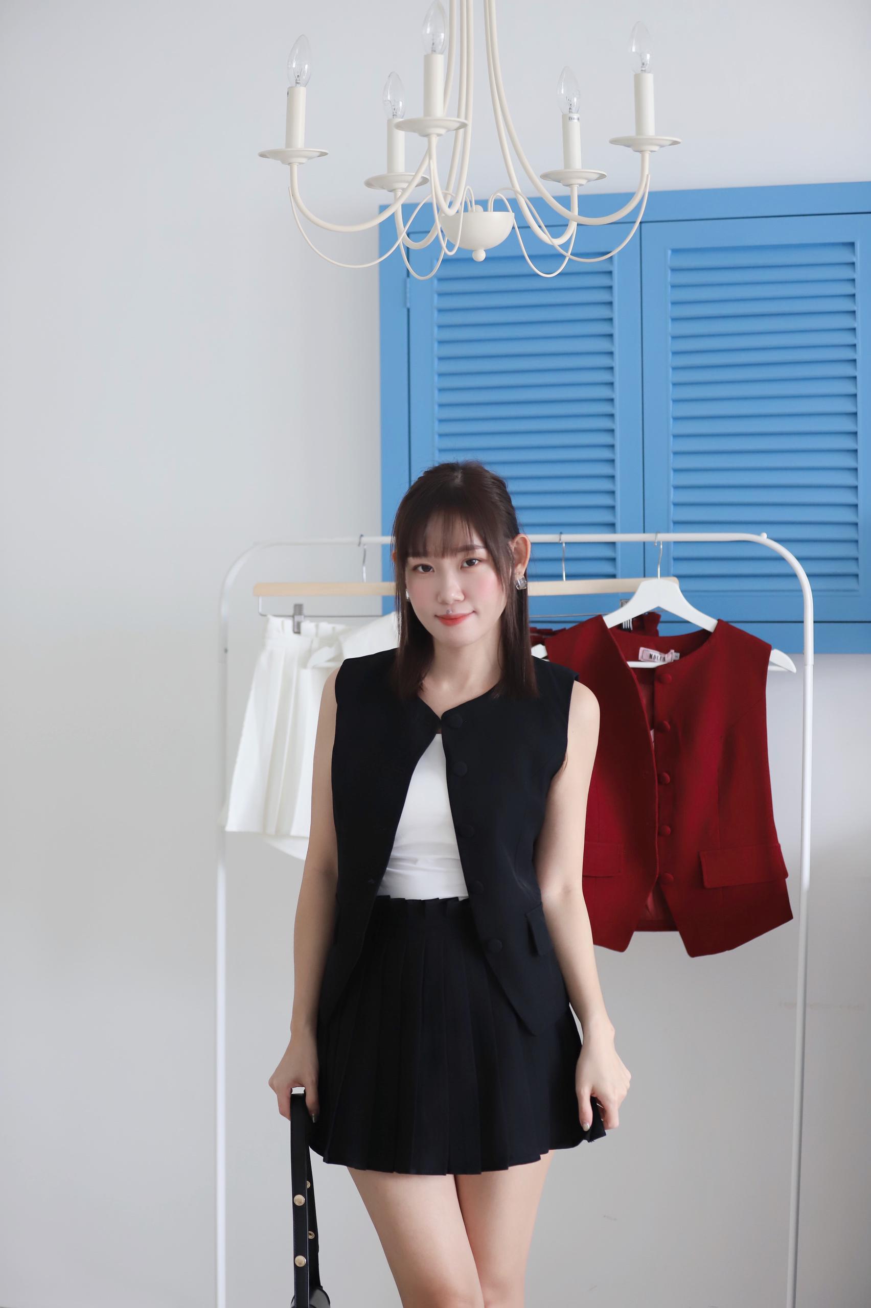 Oriana Button Vest Pleated Pants Skirt