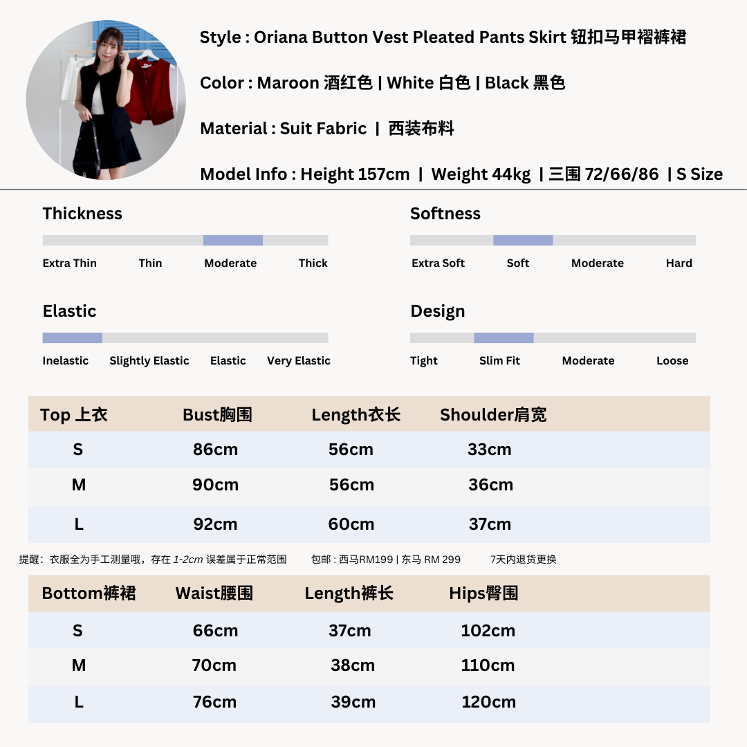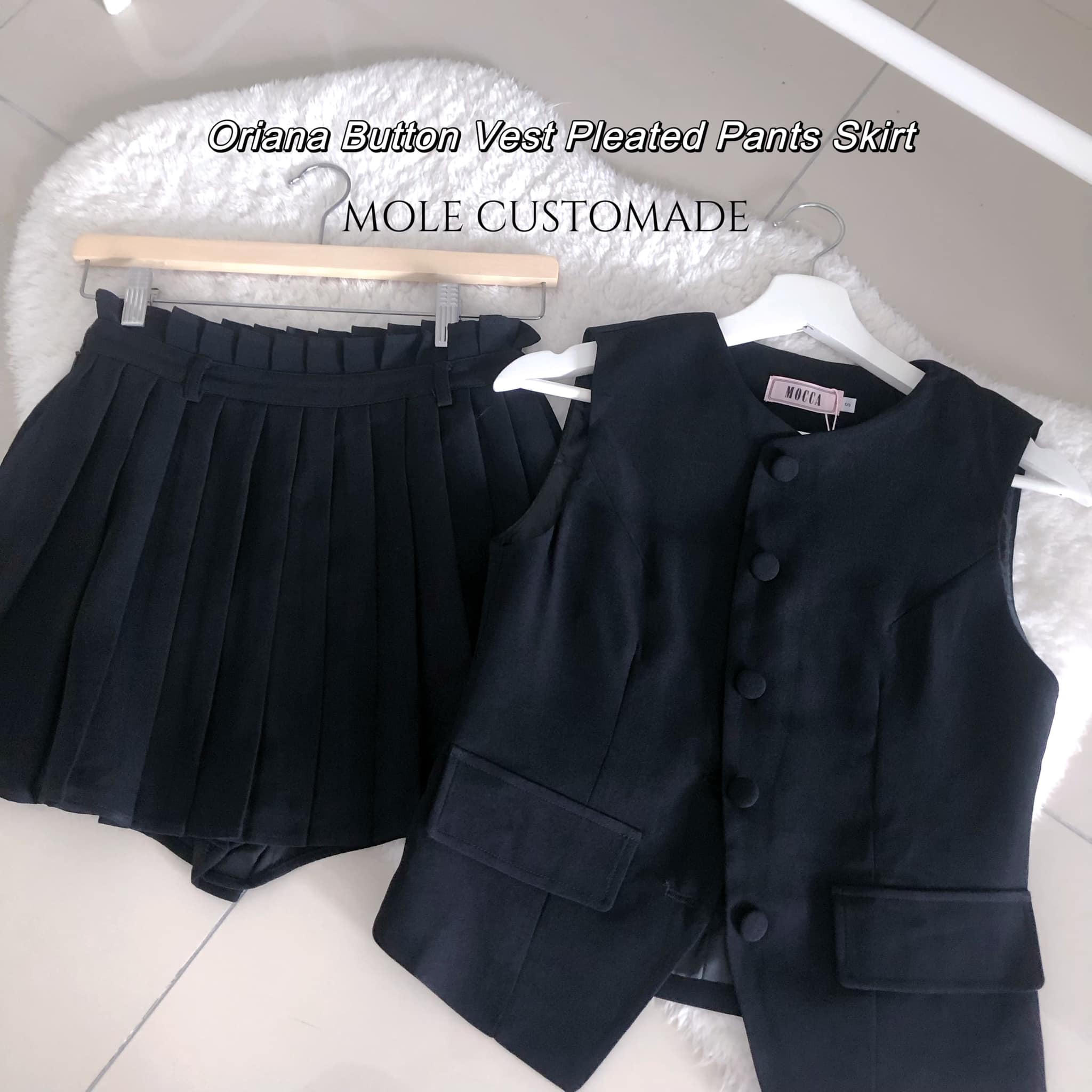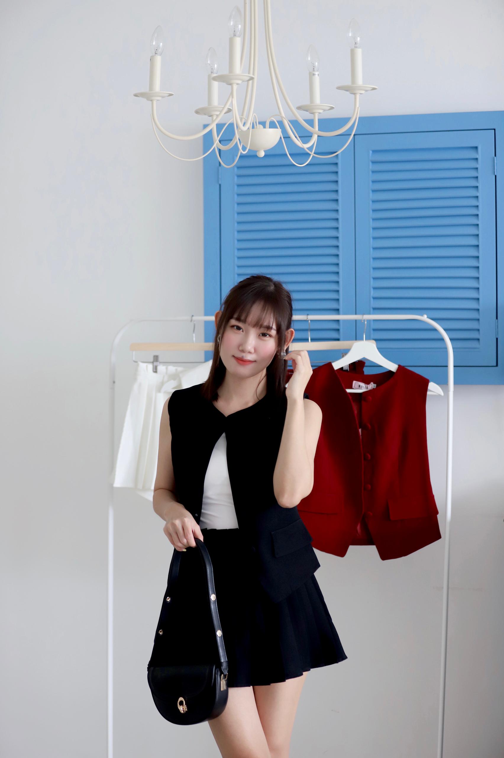 Oriana Button Vest Pleated Pants Skirt