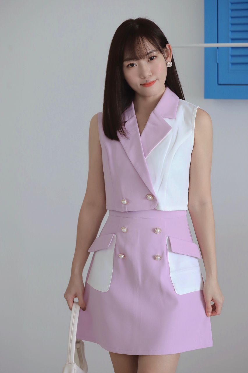 Oriana Button Vest Pleated Pants Skirt