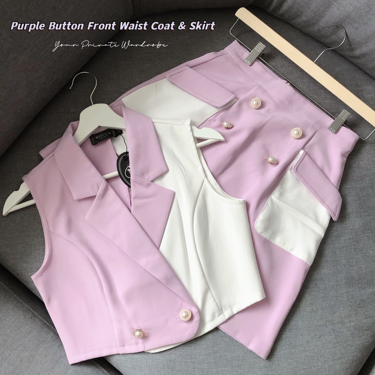 Purple Button Front Waist Coat & Skirt