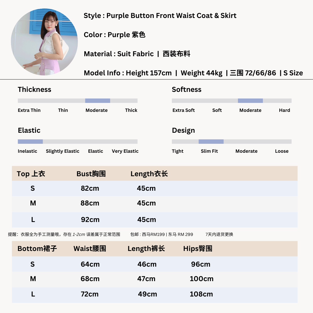 Purple Button Front Waist Coat & Skirt quantity
