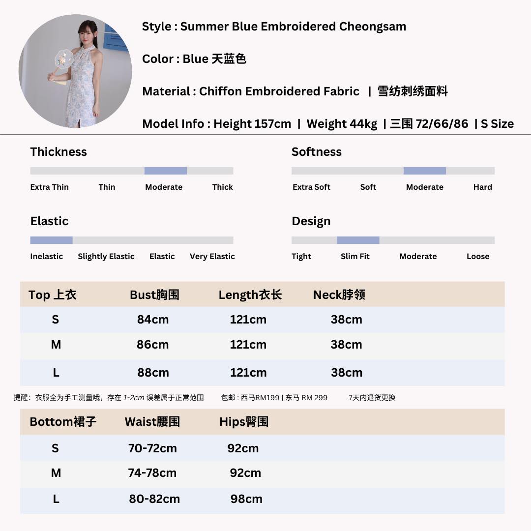 Summer Blue Embroidered Cheongsam quantity